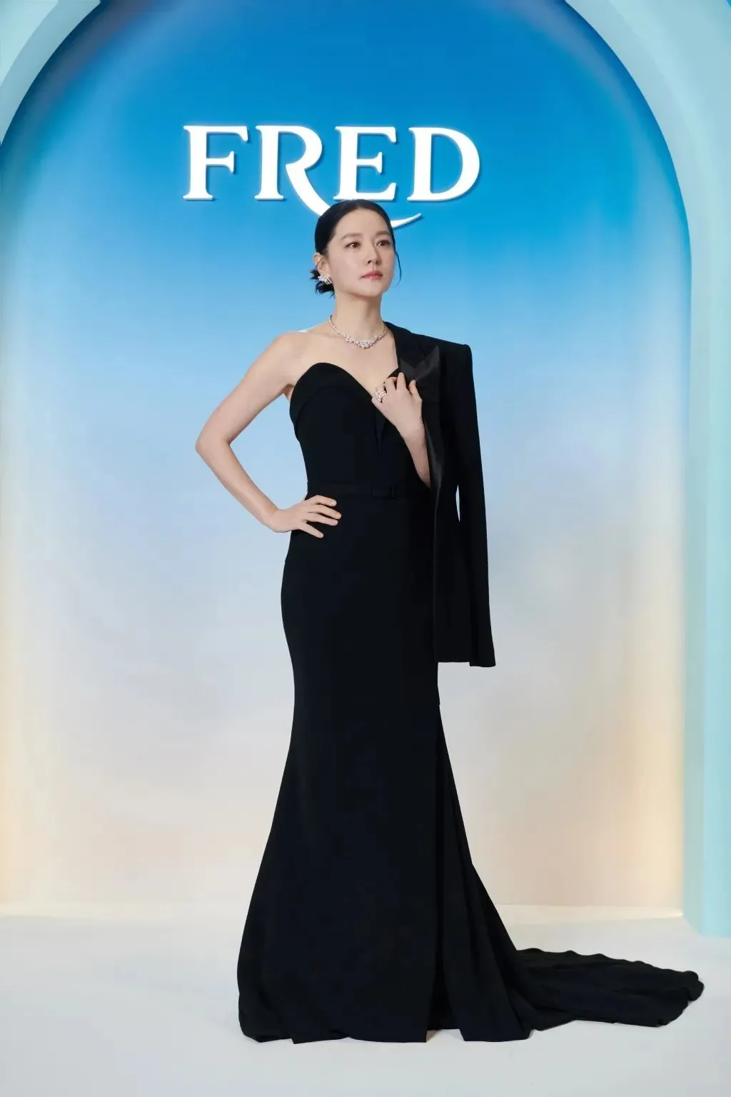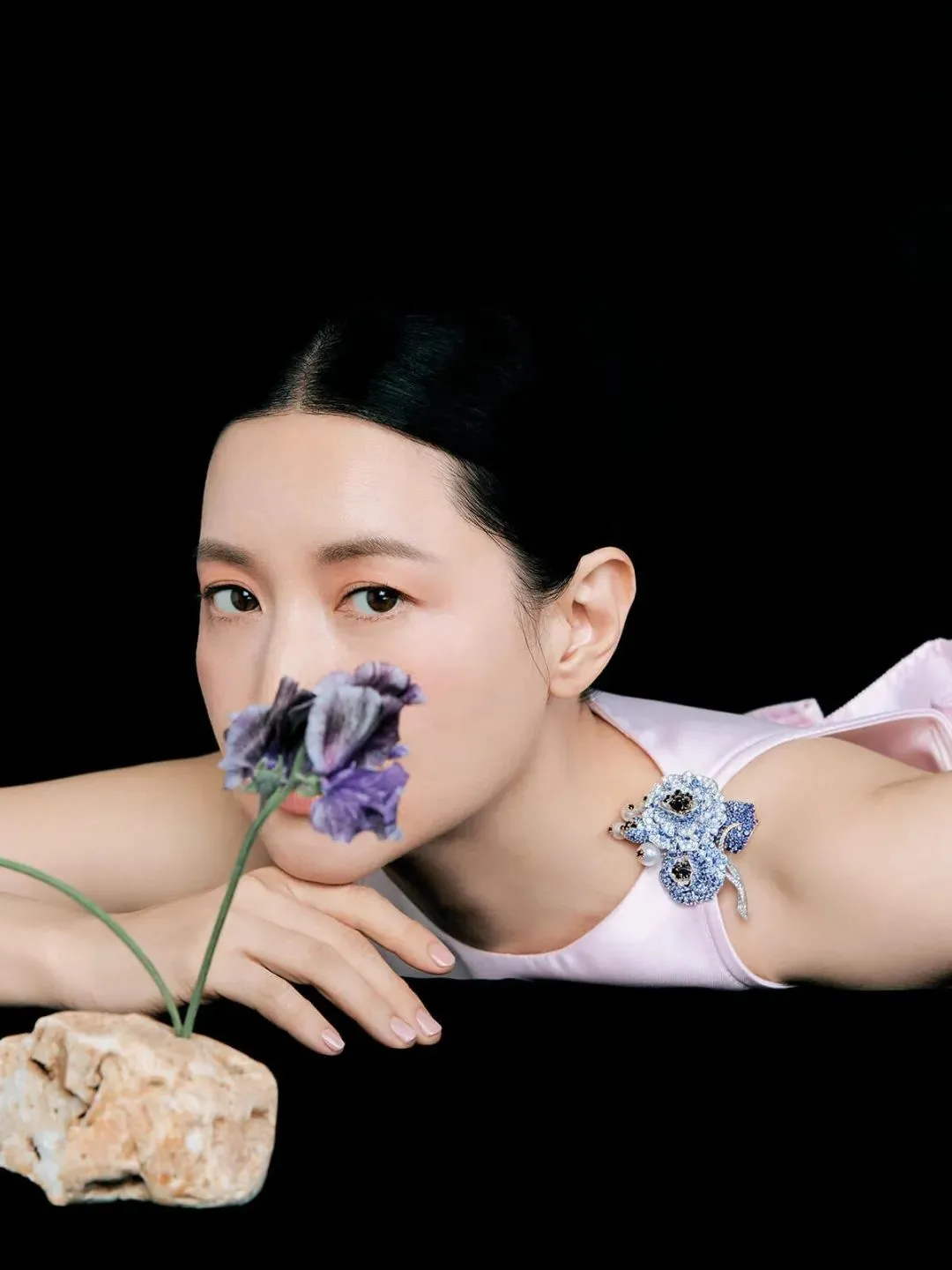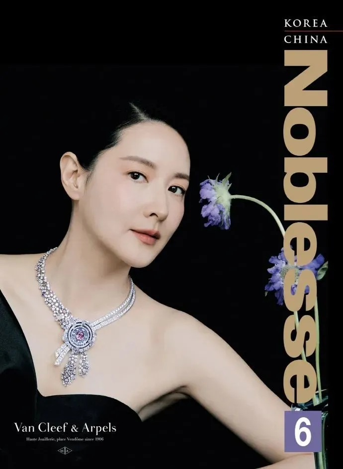 同年《Noblesse》6月刊,戴梵克雅宝高珠搭配简洁礼服和盘发造型,诗意空灵。
