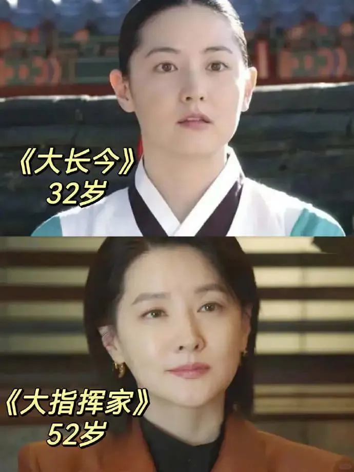 其实细看李英爱的脸,还是能看出岁月痕迹的,眼周、嘴周的细纹和下垂不可避免,但整体还是很能打,看起来也比较自然。