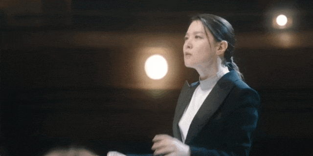 作为首席指挥,车世音在乐团工作时经常穿垫肩西装,凸显强势感,看起来不怒自威。