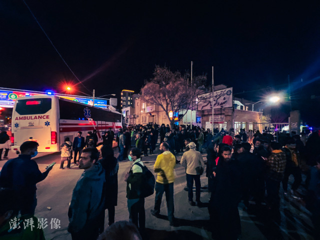 当地时间2024年1月3日,伊朗克尔曼市,当地发生连环爆炸案,人群在现场聚集。图自澎湃影像