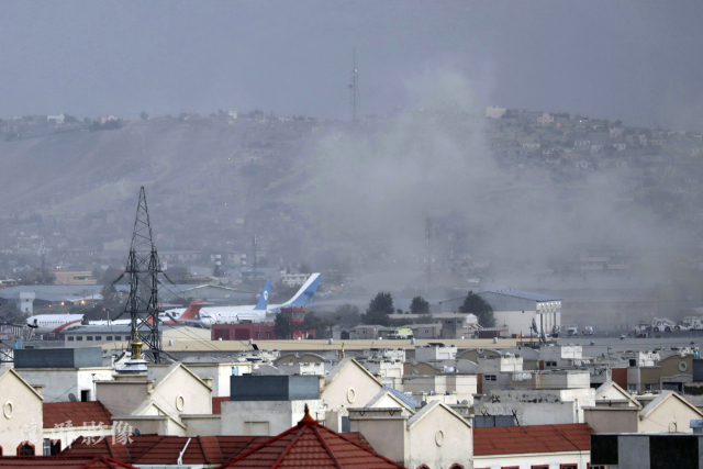 2021年8月26日,美军仓皇撤离阿富汗之际,阿富汗喀布尔国际机场外发生爆炸,造成多人死伤,“ISIS-K”宣布对此时间负责。图自澎湃影像