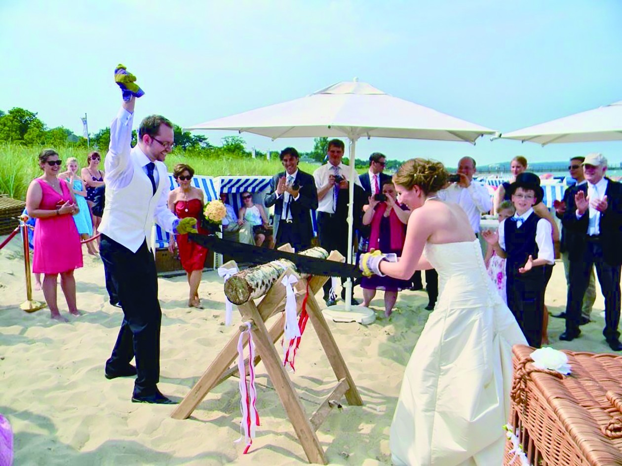 以浪漫著称的欧洲,有各种奇异的婚礼风俗。尤其在德国,几乎没有哪种习俗像婚俗这样受到重视。从婚前卖旧货、摔盘子,到婚礼时放在新娘鞋里的钱、新郎新娘一同锯木头,以及婚礼后“闹新房”——参加婚礼的亲友会用每一个细节来“考验”新人,同时希望给他们带来好运。