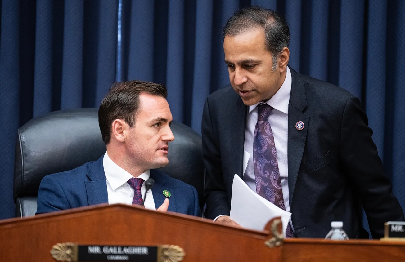 美“中国委员会”主席加拉格尔(左)和该机构民主党领袖克里希纳莫西