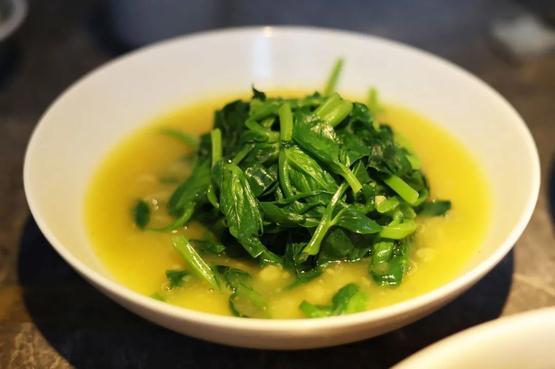 豌豆尖拿来煮汤也是一绝,豌豆尖酥肉汤,俏生生地点缀在汤里,酥肉香醇豌豆尖清爽,把油腻感中和得刚刚好;冬季阴冷,吃炖菜暖胃暖心,特别是炖羊肉汤,喝汤时放一把豌豆尖进去,解腻增香,给浓郁的肉汤增加几分蔬菜的清新;也可以直接炒着吃,给点蒜末就是一道可口下饭的小菜。