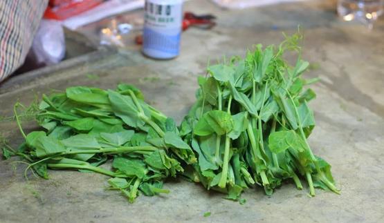 而豌豆尖,则是茎叶茁壮成长后顶尖尖上发出的嫩叶子和茎,所以叫豌豆尖,掐掉后还会继续生长。豌豆耐寒,四川地区一般在秋天下种,冬春收获,茎叶长得稍有规模,就是掐豌豆尖最好的时间。挑豌豆顶上刚发出的嫩叶子带茎掐下,整整齐齐的码好,就可以上市售卖。