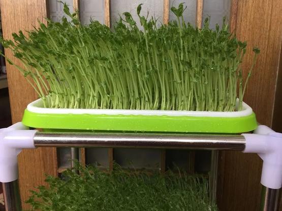 豌豆苗更像是“豆芽”,将豌豆泡发后给水/土营养,就能长出翠绿的豌豆苗,它是豌豆最幼嫩的茎叶。