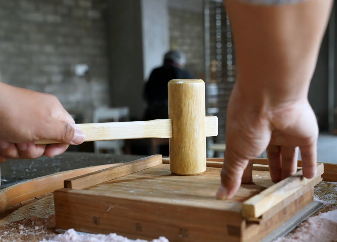 杨勤峰在焋打糕模,使糕粉脱模成型(1月10日摄)。新华社记者 王翔 摄