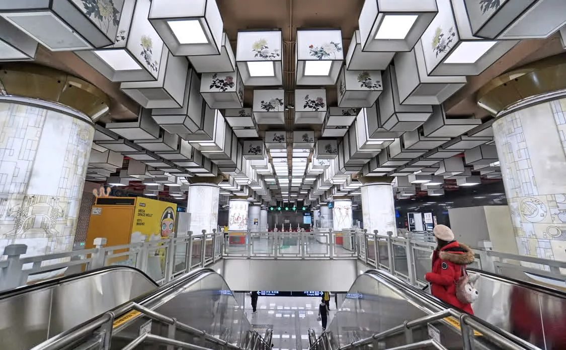 这是平安里地铁站内的中国风灯饰(1月20日摄)。新华社记者 李欣 摄