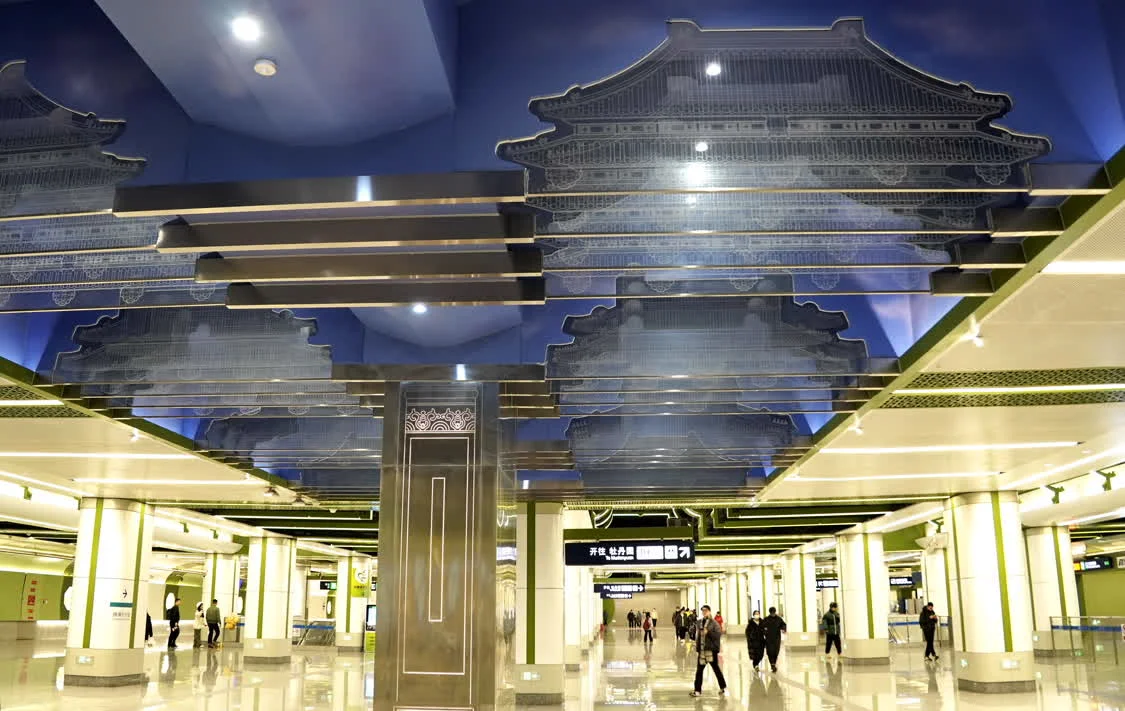 近年来,北京市在大力建设地下轨道交通的同时,注重站点的艺术设计,给乘客带来艺术享受。