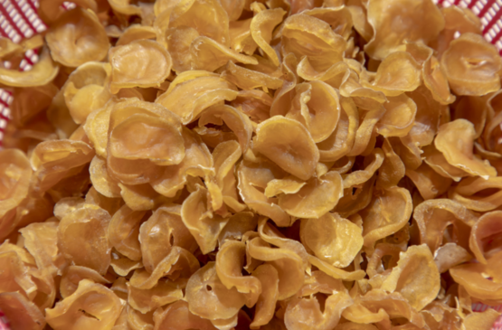 干茄子、干葫芦、干土豆片同样适合炖,与小笨鸡或是大鹅一起炖,比鸡肉、鹅肉还受欢迎。干葫芦条剁碎包饺子也很出彩,质地有点像南方的笋干,柔韧弹牙。干黄瓜片又叫“黄瓜钱”,主要用来做炒菜,黄瓜钱脆脆的,嚼在嘴里咯吱作响,还保留着黄瓜特有的清香。