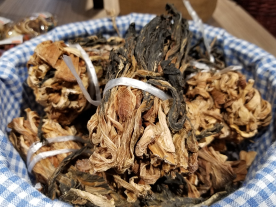 各种干菜晒好后,分门别类装入袋子,放到较为干燥通风处保存,就等着凛冬来临了。