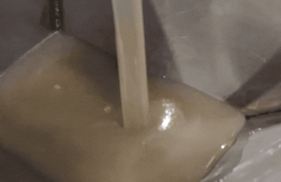 熬好的糖稀加入料斗,等会儿加入米花中。