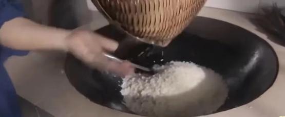 某宝上的米花糖,用糯米、大米、小米的都有。这里以四川蒲江的米花糖为例,选用的是糯米,洗干净后浸泡,再蒸熟。然后等自然阴干后,把米团分散过筛,颗颗分明,就成了熟化的米粒。