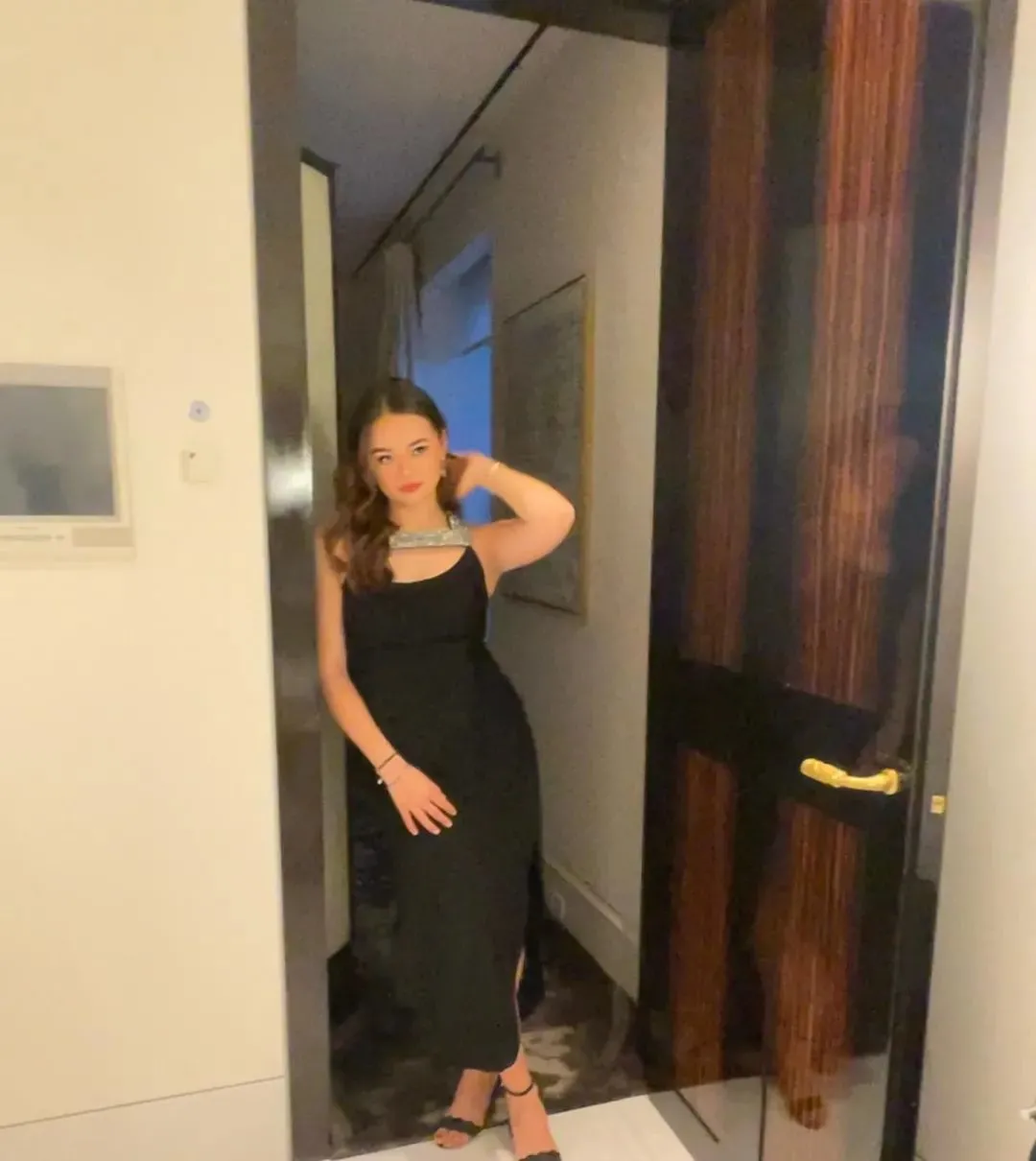 尤其是曾被妈妈嫌胖的格蕾丝,她一路走来变化很大。如今一条简单的小黑裙,就显示出自己已经出落成了小美女,名媛范儿十足。