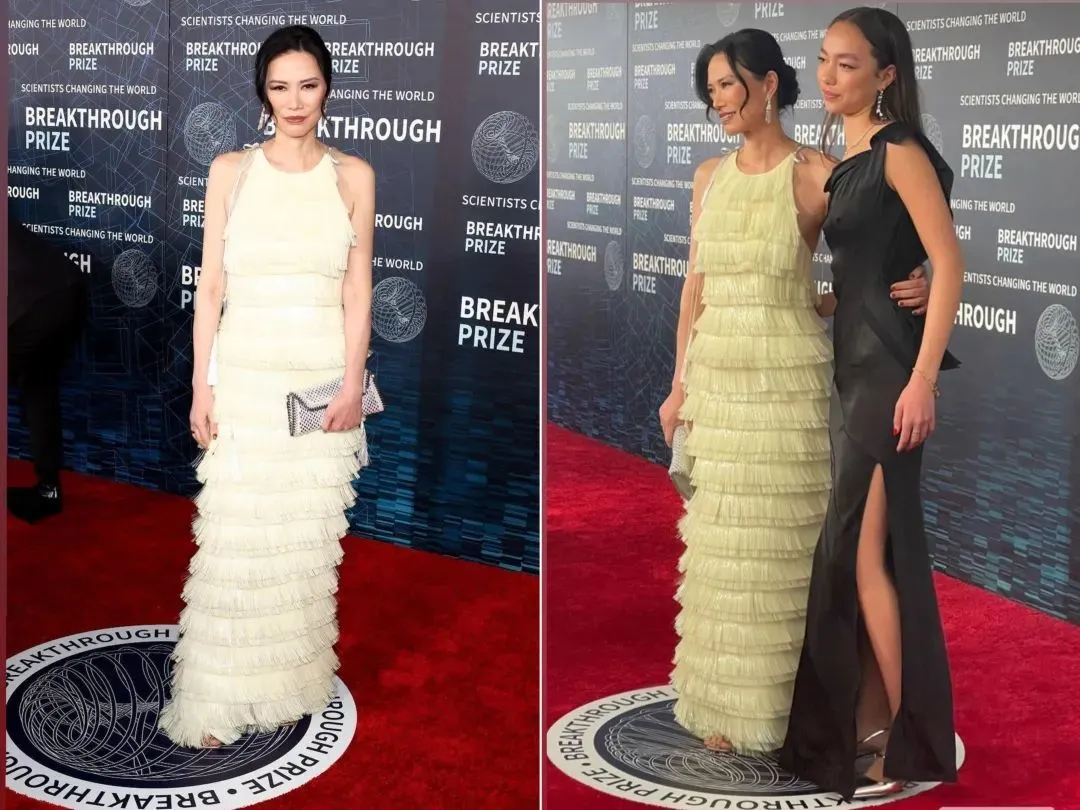还带小女儿亮相科学突破奖红毯,邓文迪这条鹅黄色GUOPEI高定流苏裙也很春天,整体轻盈又灵动,上身超级减龄。可惜身穿缎面小黑裙的Chloe,风头全被妈妈抢光光。连亲生闺女都要艳压,狠还是邓姐狠...