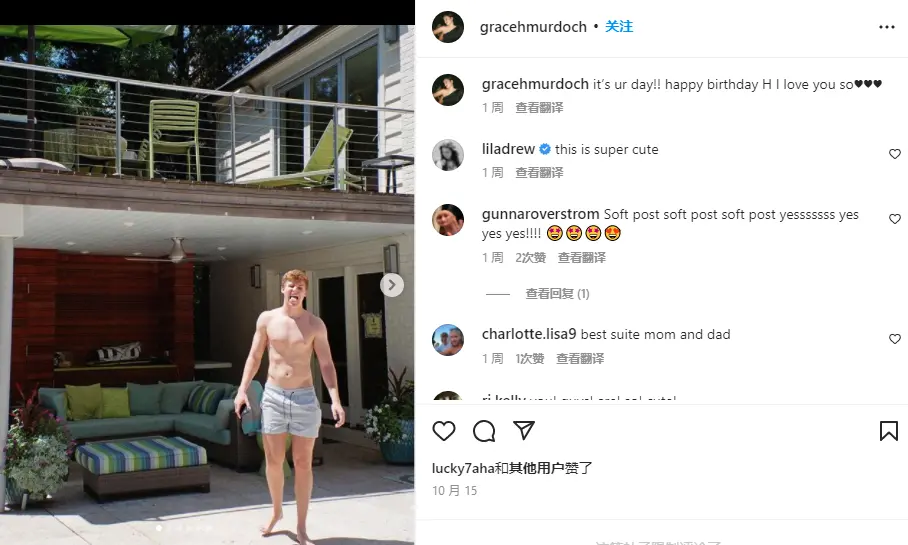每年默多克过生日,姐妹俩都会定点发祝福。比如会配上一张默多克的照片,以及"爸爸生日快乐,爱你无限量”的配文。