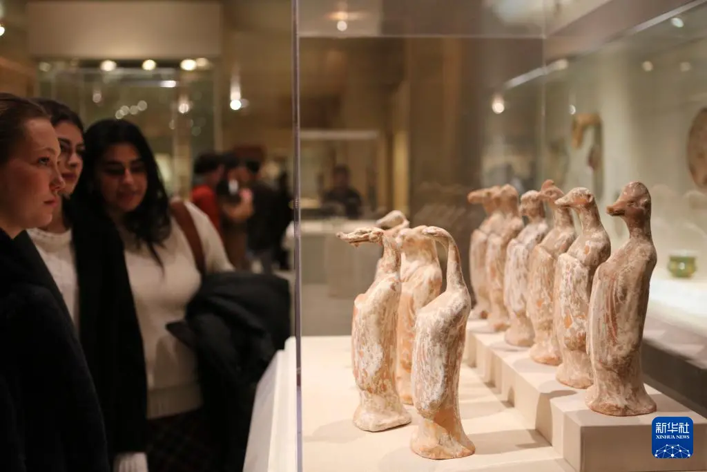 2月3日,在美国纽约大都会艺术博物馆,参观者观看“龙年吉祥”特展上展出的唐代彩绘陶十二生肖俑。