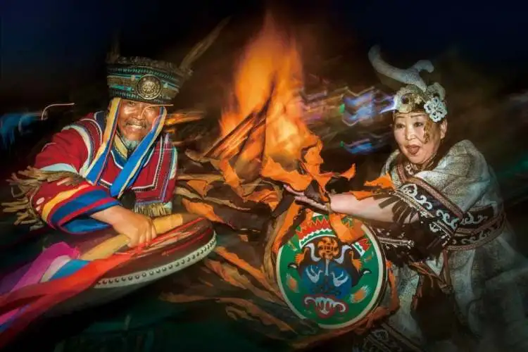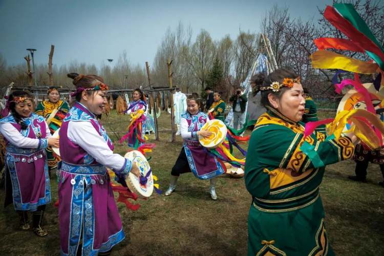 在蒙古族、满族、锡伯族、赫哲族、达斡尔族、鄂伦春族、鄂温克族及维吾尔族、哈萨克族、柯尔克孜族等民族的文化中,仍有萨满舞的遗存——这个带着图腾崇拜和“万物有灵”观念的原始舞蹈,始终在传承着。