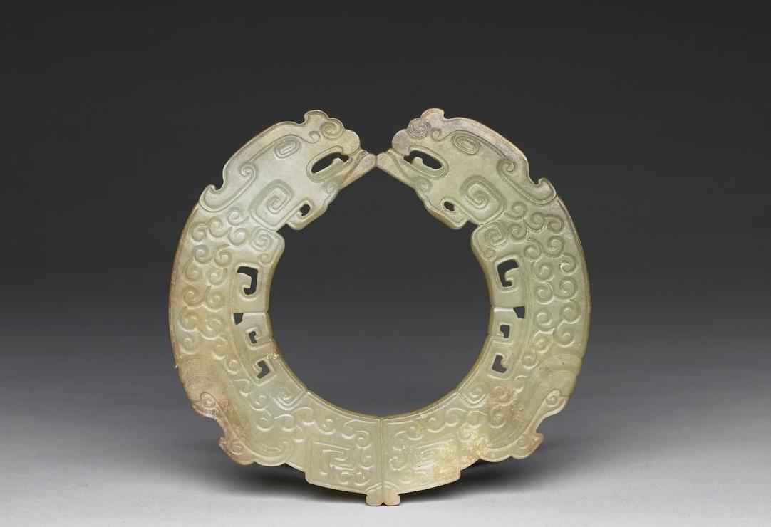 玉镂空人龙纹璜西周晚期 玉石器 台北故宫博物院藏