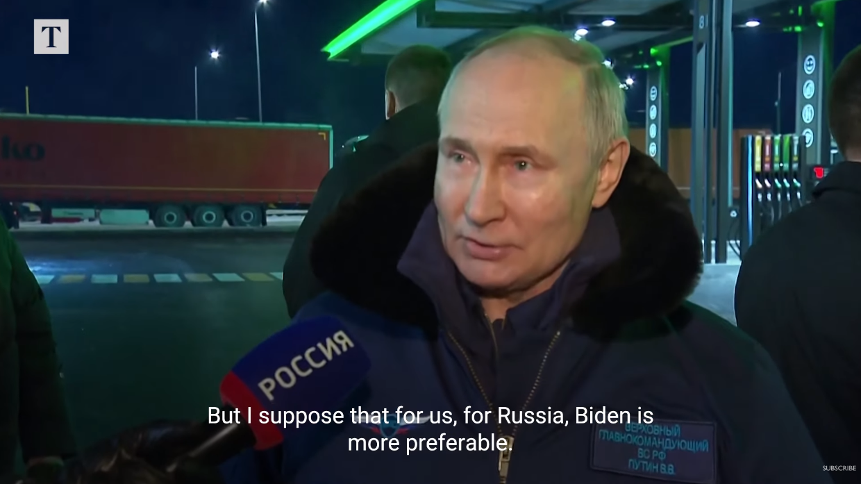 此前,普京在当地时间2月14日接受俄罗斯国家电视台采访时曾表示,他宁愿81岁的拜登入主白宫,而不是77岁的特朗普,因为拜登是一位“老派”政治家,且是比特朗普更可“预测”的选择。