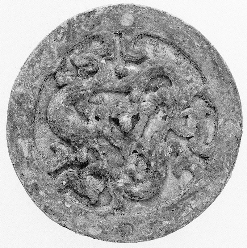 图十四-1 洛阳龙泉沟西邙山235号北宋壁画墓云龙镜(洛阳市第二文物工作队:《洛阳邙山宋代壁画墓》,《文物》1992年12期)