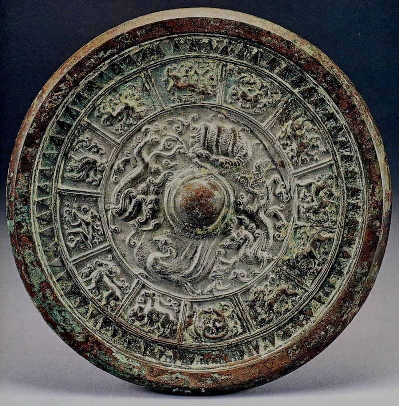 图一 传洛阳金村战国墓出土三龙十二连弧纹镜(霍宏伟、史家珍主编:《洛镜铜华:洛阳铜镜发现与研究》上册,图8,科学出版社,2013年)