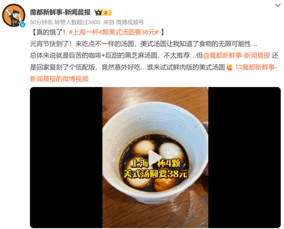 只是没想到,如此好操作的咖啡汤圆,在上海一家店居然卖到了38元……看到#上海一杯美式汤圆要38元#的热搜,只想说:商家真的“美式”吧?!还是自己回家动手组装一下更划算。