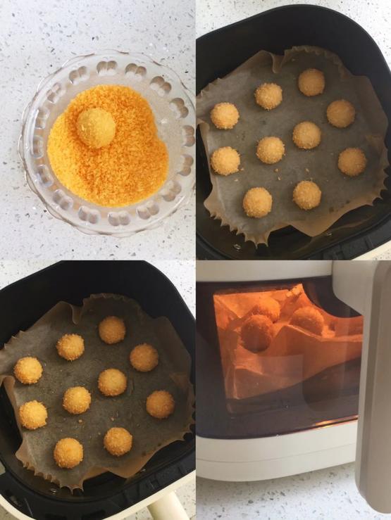 将汤圆煮熟裹上面包糠然后放进空气炸锅,你就能毫不费力地收获一枚外酥里糯的烤汤圆。