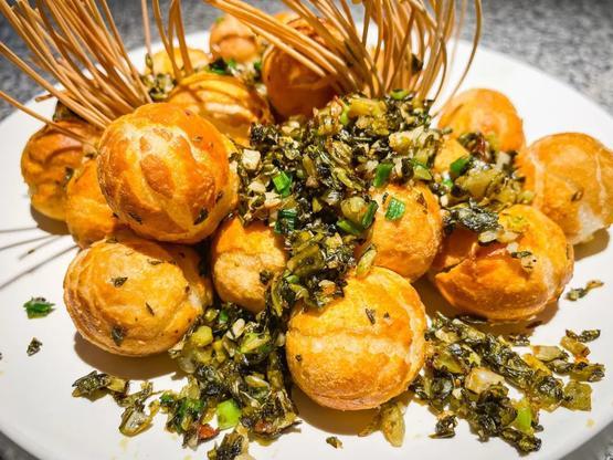 酸爽十足的酸菜加上辣椒本就十分开胃,炸过的汤圆经过翻炒后,外面的酥皮也被酸辣味所浸入,导致其外层咸香酸辣,内里甘甜软糯,反差的口感让人欲罢不能。