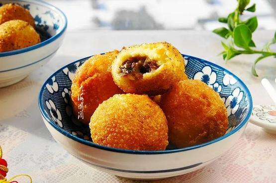 元宵经过油炸后,外面包裹的糯米皮变得酥脆,吃起来外酥里糯,夹着的馅儿又香甜可口。