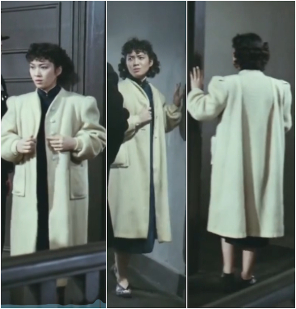 两相比对,月红法庭上的装束几乎就是复原了的1948年前后上海秋冬的时式女装。类似的重现也出现在《不夜城》中。