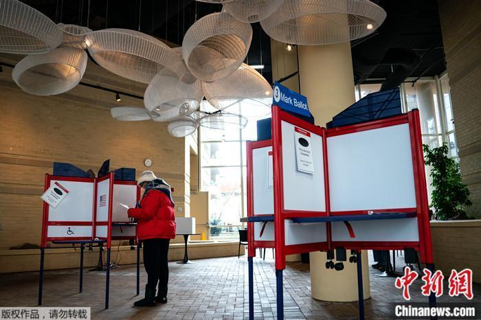 资料图:当地时间3月5日,选民在美国弗吉尼亚州的一处投票点投票。