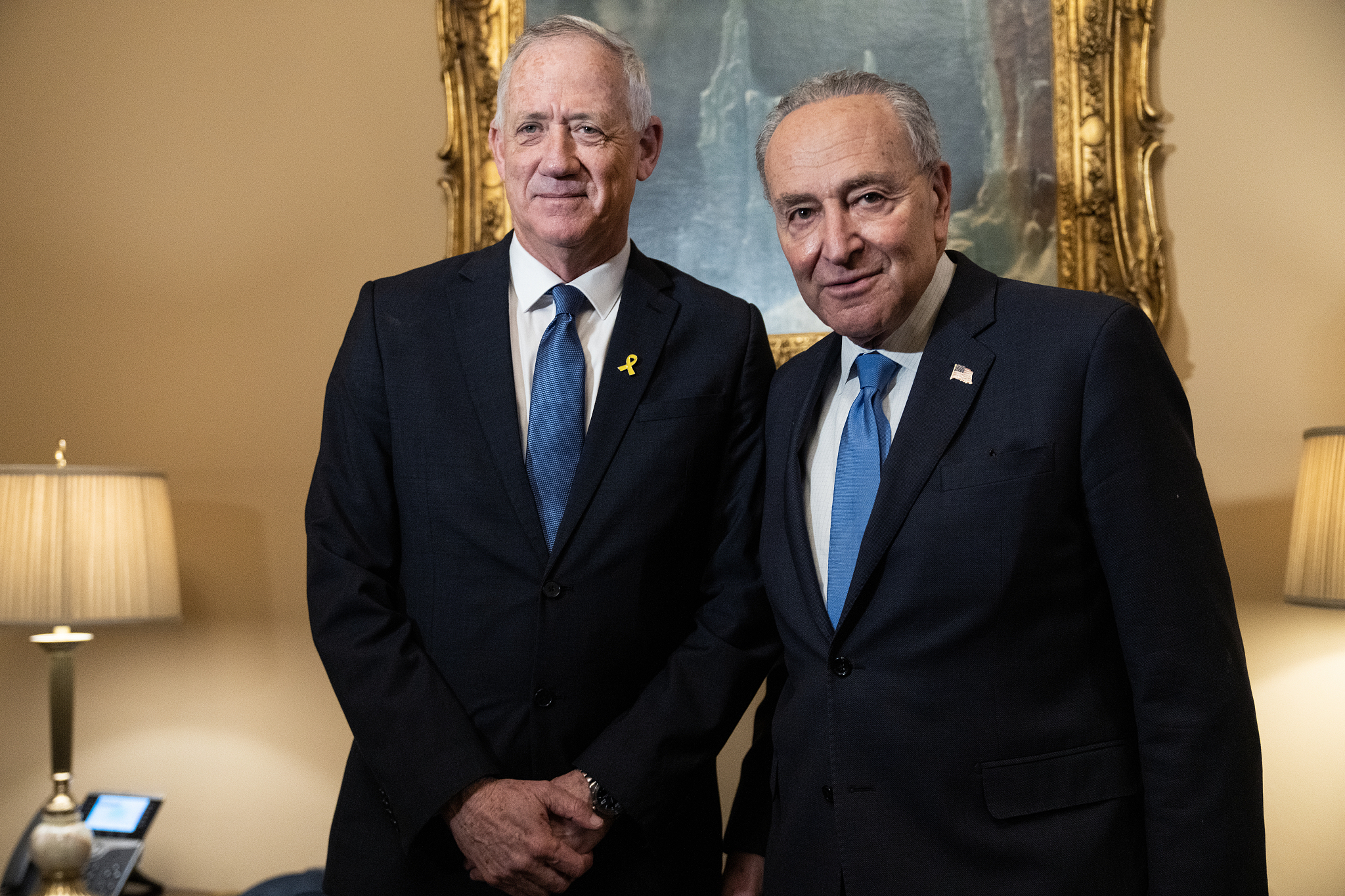 当地时间3月5日,美国华盛顿,参议院多数派领袖舒默(右)与本尼·甘茨进行私人会晤 图自视觉中国