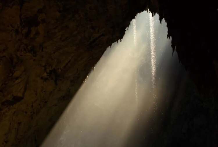韩松洞顶部的落水洞也很特别,“那里有阳光透射进来,于是有了地底深处的小型丛林”。虽然每年仅有几周的日照时间,但这些植物和一些动物,还是在这个地下世界活了下来。