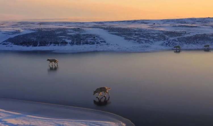 享受短暂日照的北极狼。(图/《地球脉动Ⅲ》)