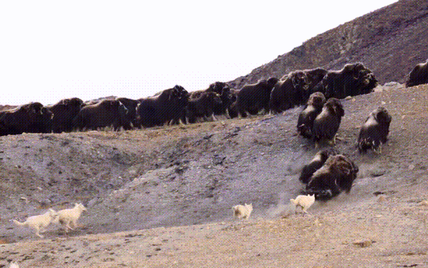 “但这些北极狼对人类表现得很信任,它们不怕我们。我看着它们时会想:‘我就是一道唾手可得的美味,你们为什么不吃掉我呢?’但不知为何,它们不吃我,它们更喜欢捕食麝牛。”