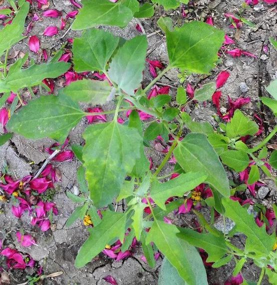 又叫灰灰菜,白藜(lí),苋科藜属,茎叶绿色或微微泛红,叶子上有层粉,摸起来滑滑的。有点苦,开水焯熟后,凉拌、热炒。灰菜是一种含有嘌呤类物质的光感性植物,能吃但略有小毒,吃多了会引起“日光性皮炎”等光感性炎症。