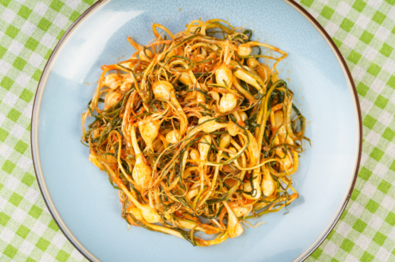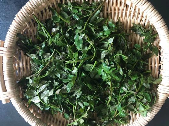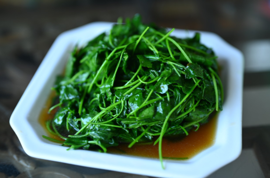 豌豆的嫩苗经过高温去除毒性,充分焯熟反复浸泡以后,清新的草香,适合跟各种调味料一起搭配。