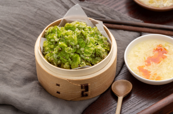 榆钱拌上白面、玉米面蒸熟就成榆钱饭,自有一股清香,也可以配蒜汁吃,相当爽口。