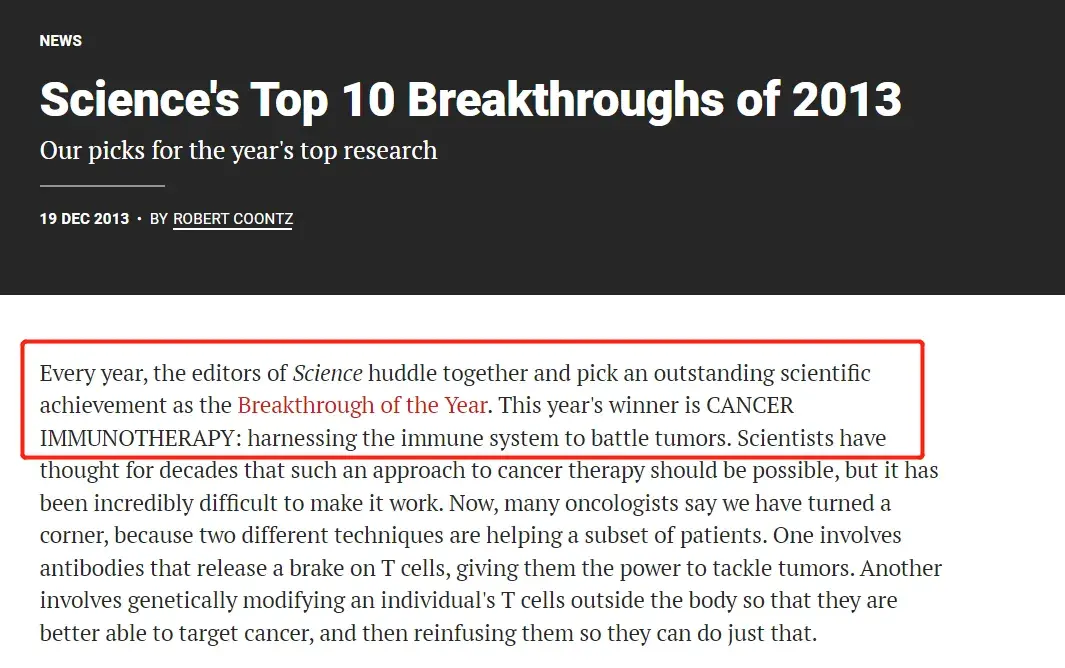 然而,转机也就在同一年到来。当年,人体对癌细胞新抗原的免疫反应得到验证,肿瘤治疗性疫苗被 Science 评为年度最重要的科学突破 [7]。