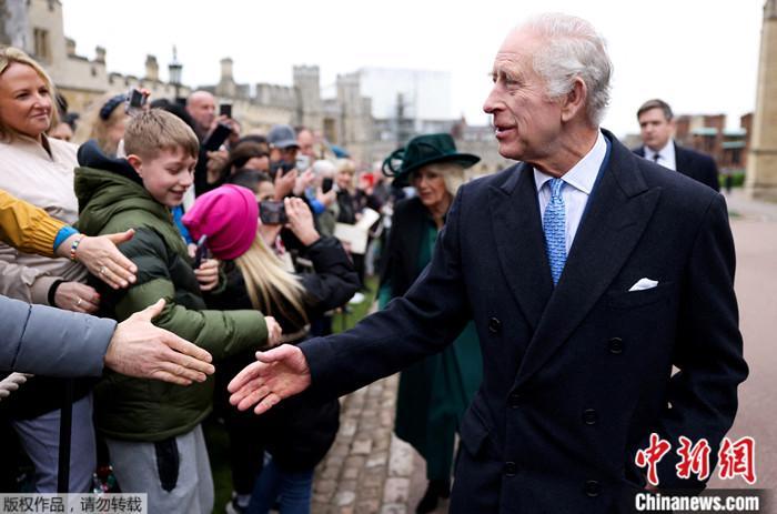 据报道,礼拜仪式结束后,查尔斯在王后卡米拉的陪同下,与前来观看活动的民众握手致意。许多人向他们表达祝福,并祝愿国王早日康复。