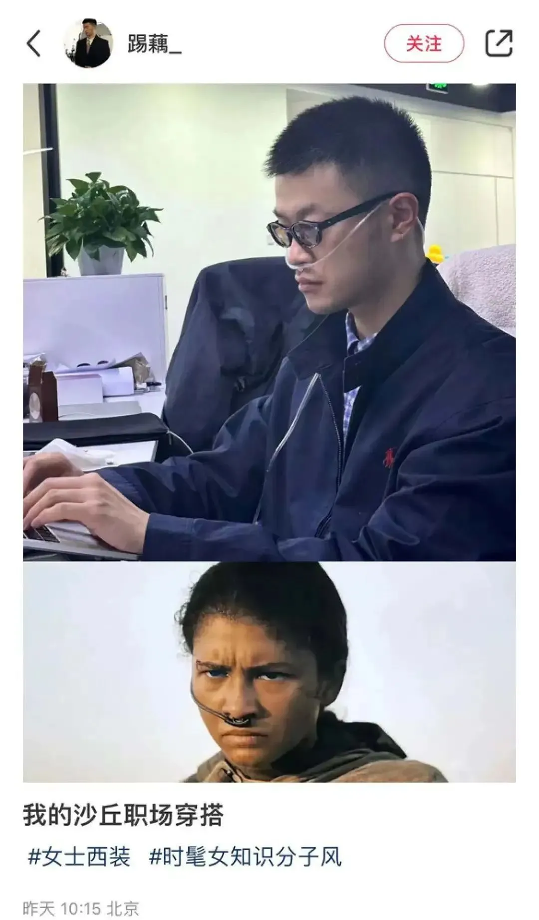 如果还有心情乐此不疲的审美试错,何尝不是对班味儿的一种洗涤和净化。当然已经有打工人将时尚和班味进行了巧妙融合——