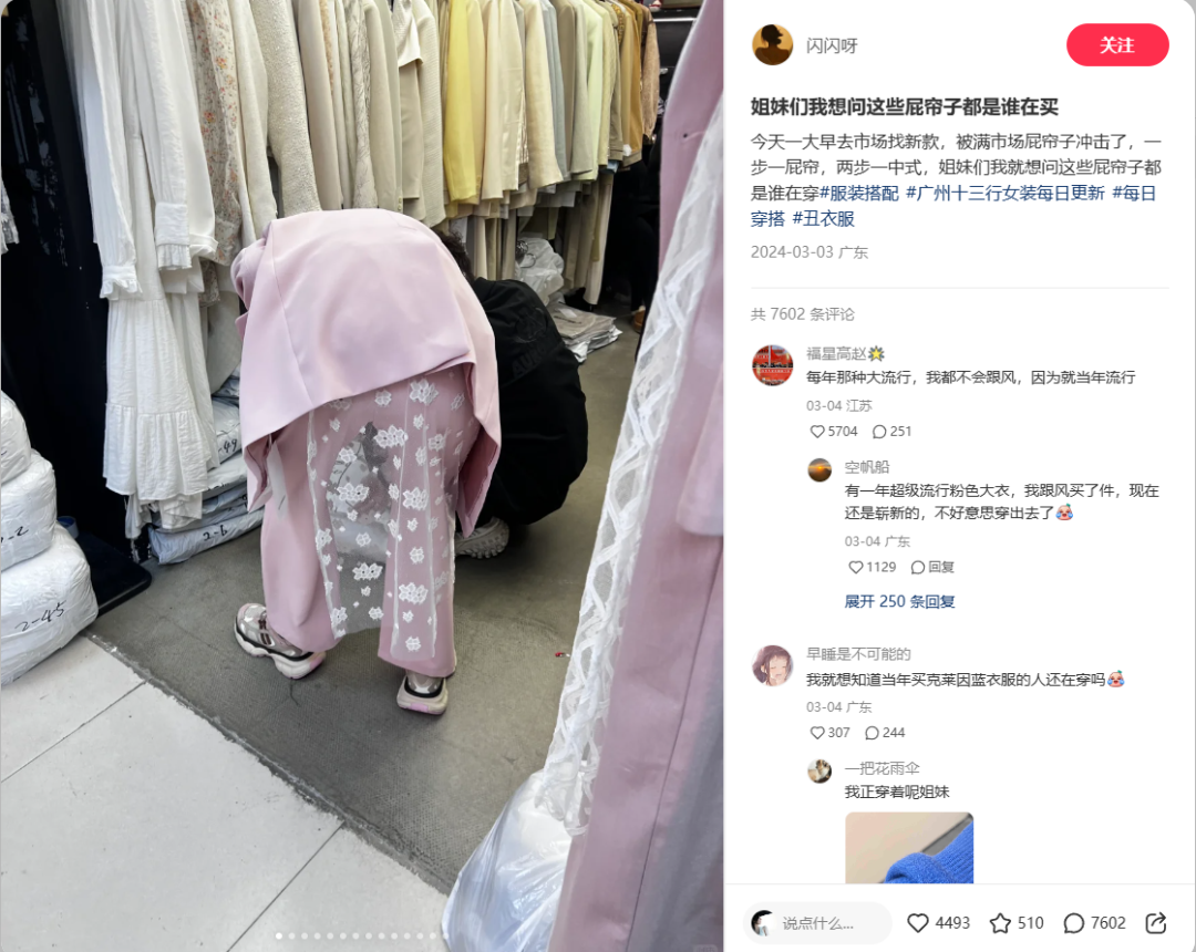 屁帘爆火才没多久,淘宝拼多多等购物平台上就开始充斥着“今春新品”、“韩国东大门”、“韩系氛围”等标签。