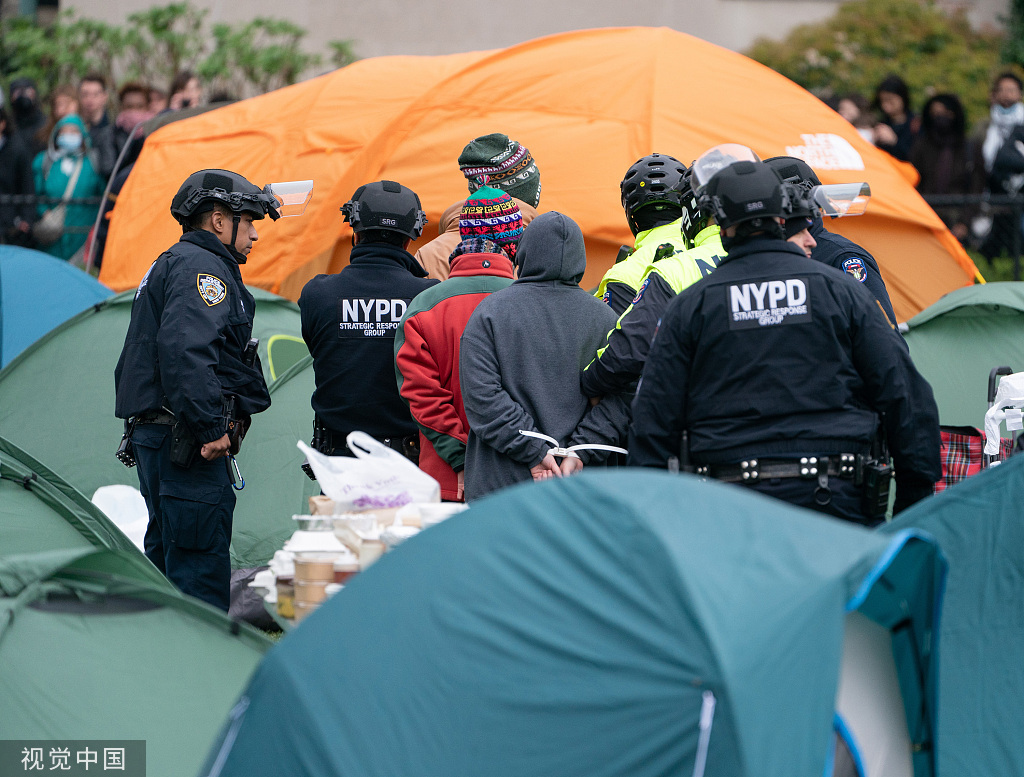 4月18日,美国纽约警方在哥伦比亚大学逮捕抗议者 图源:视觉中国