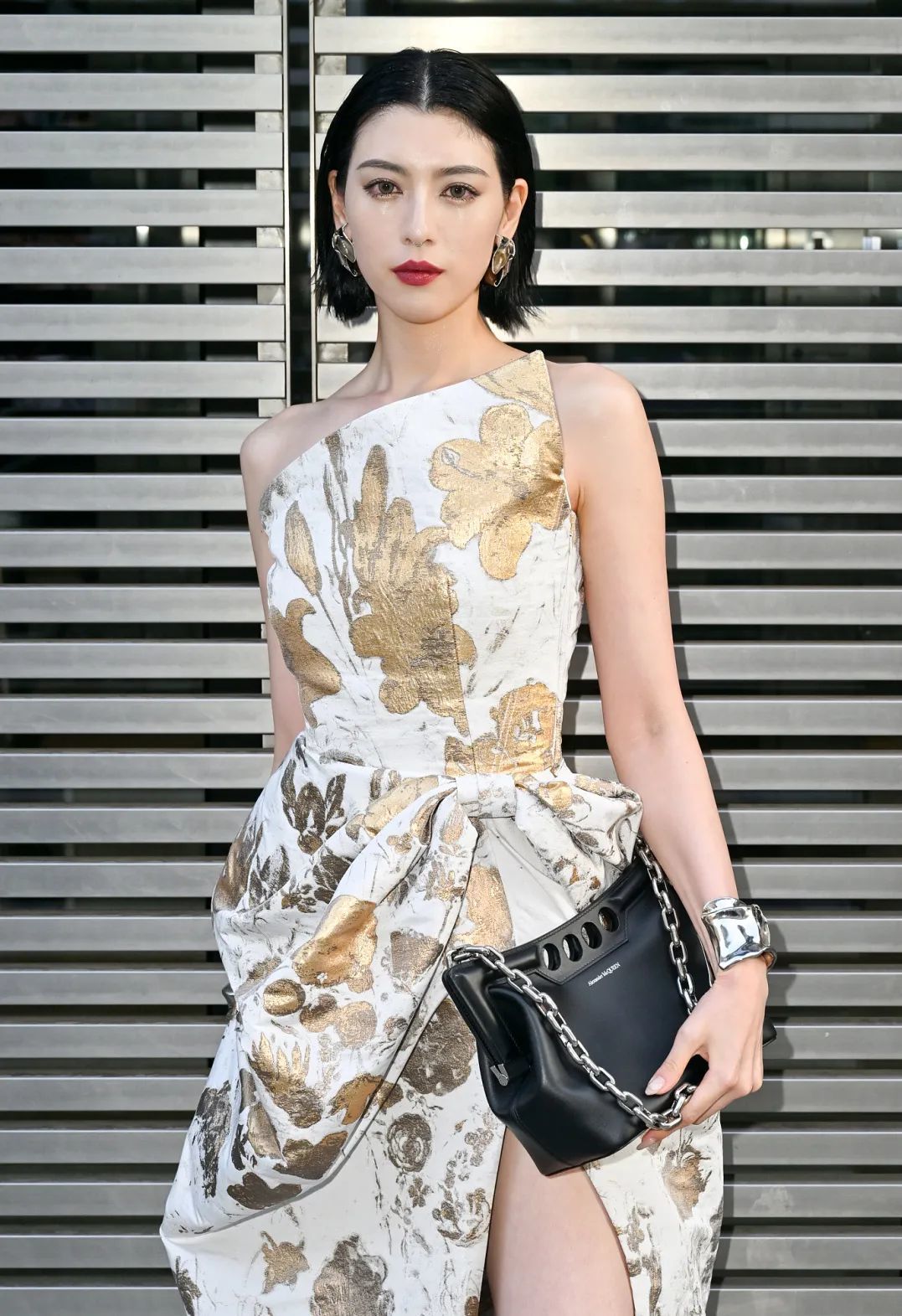 前不久戚薇在秀场的湿发造型搭配烟熏眼妆,有点哥特暗黑风格,也算是份合格的答卷。