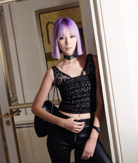 如果觉得黑色比较沉闷,可以像Irene Kim一样染个活泼的彩色。