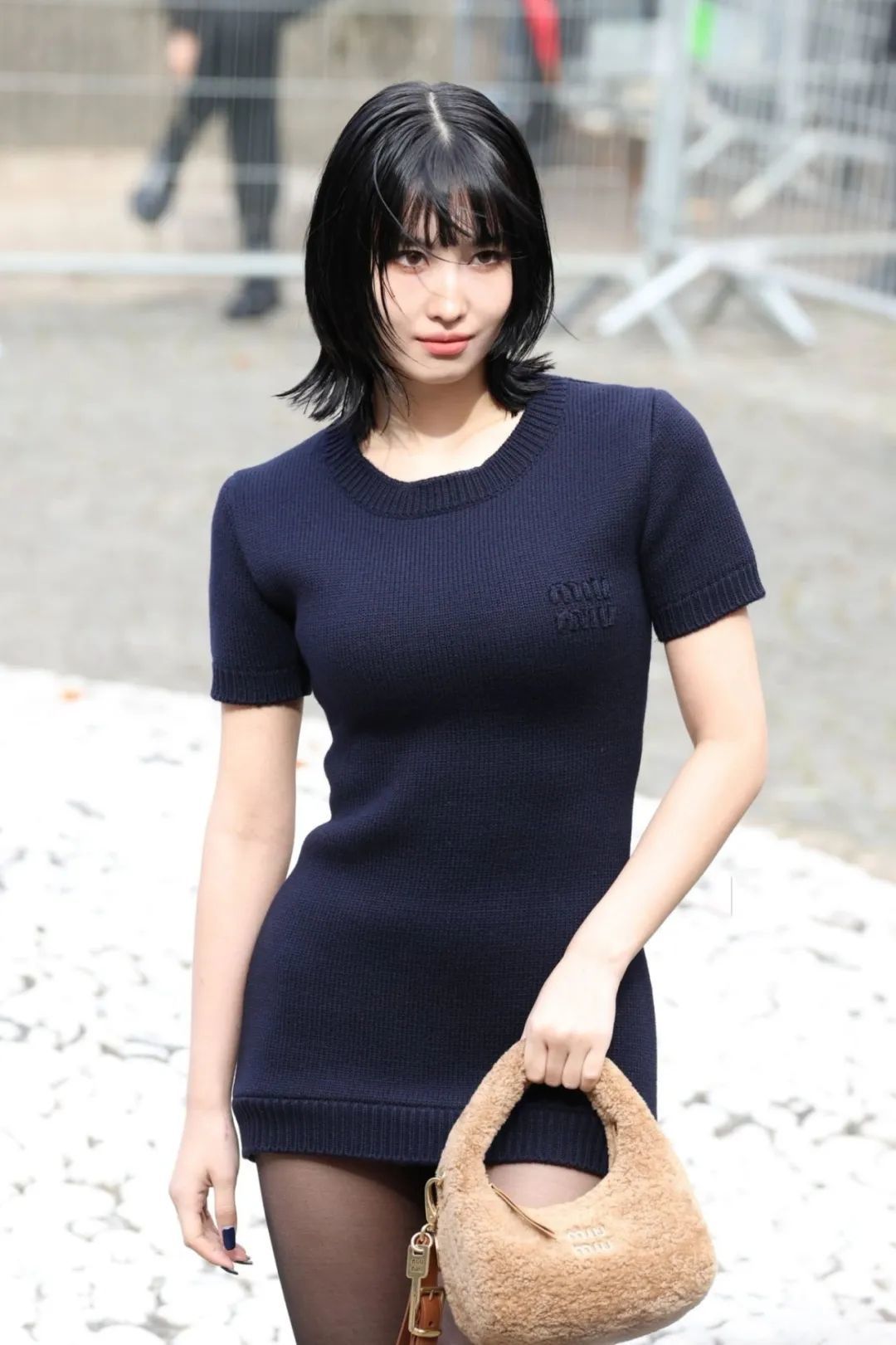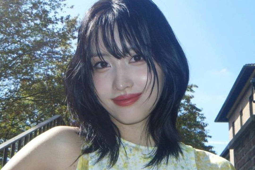 水母短发的代言人有Twice的Momo,这款发型修饰脸型的效果更好。