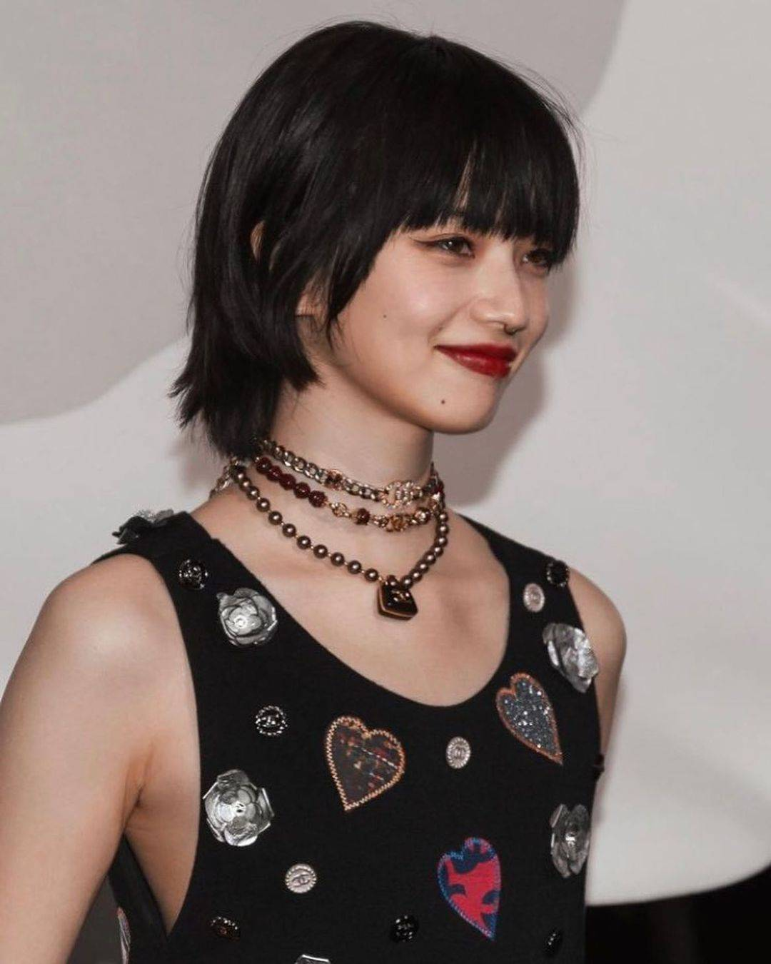 小松菜奈的水母头搭配一刀切刘海,很酷很美丽。