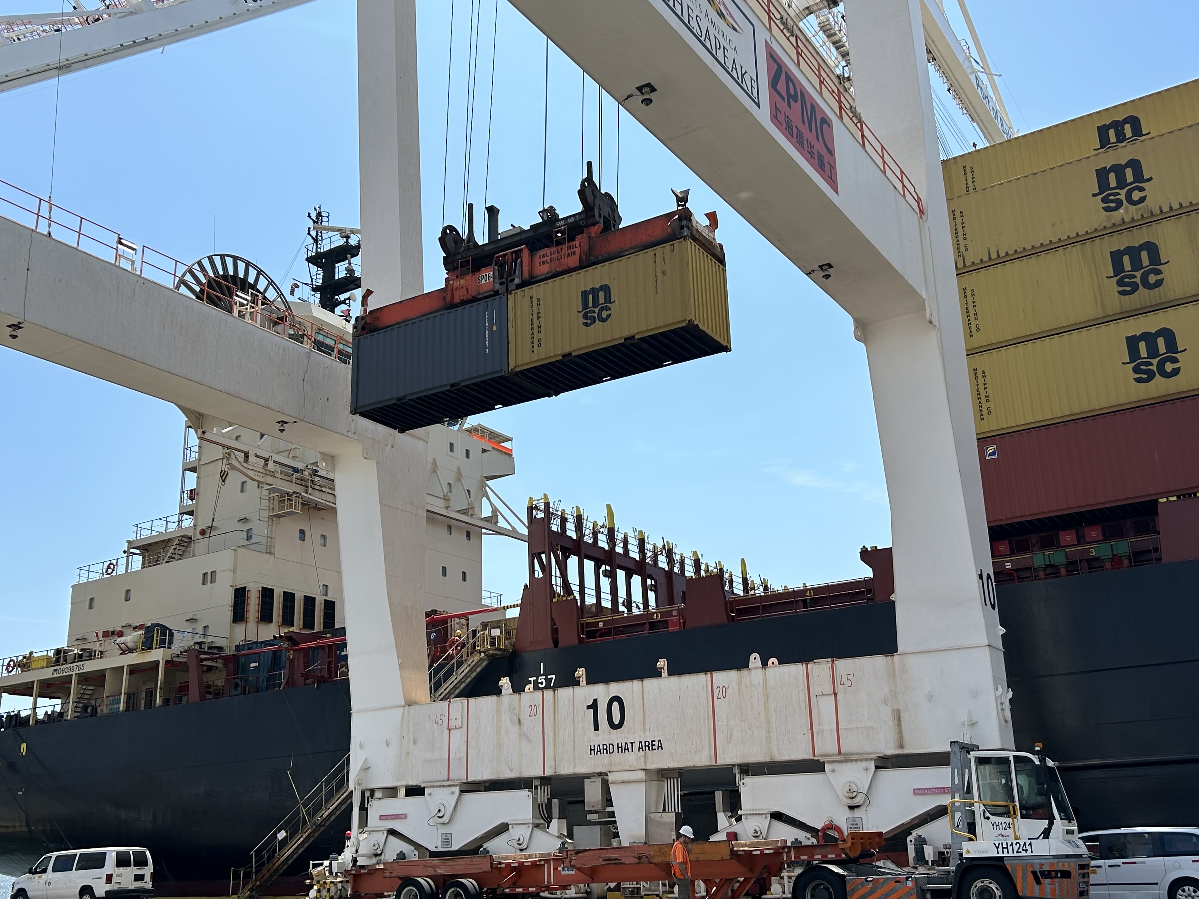 28日,集装箱船(MSC Passion III)抵达巴尔的摩港西捷海运码头