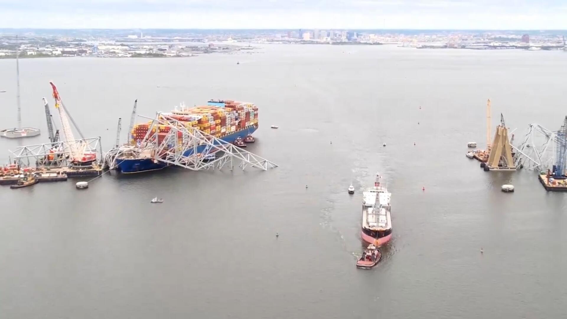 上月26日凌晨,悬挂新加坡国旗、装载了9971个集装箱的“达利”号货轮撞到巴尔的摩“弗朗西斯·斯科特·基”大桥,导致钢制桥体坍塌,人员和车辆坠入帕塔普斯科河中。桥塌后,巴尔的摩港一直处于关闭状态。